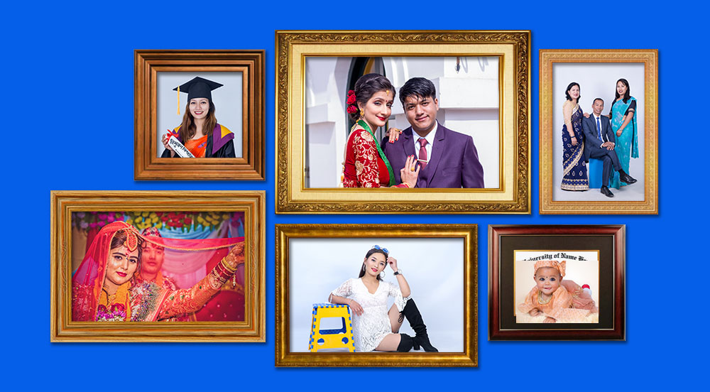We offer photo sessions that can be either in the Studio or outdoors to capture natural look of yours. The indoor ambience of our studio is extremely composed with multiple choices of backdrops and props. To give complete attention to our esteemed customers, we offer single booking only for one whole day for photographic session. We also boast about having expert hair stylists and makeup artists who are through professionals who will do your hair and make up in our studio prior to your photo session. We offer outstanding and affordable photography services for various occasions and family functions such as engagement, wedding, Anna prashan, birthday, bratabandha, etc. Recognized as the complete photography studio in Kathmandu, we have earned a long list of clients.